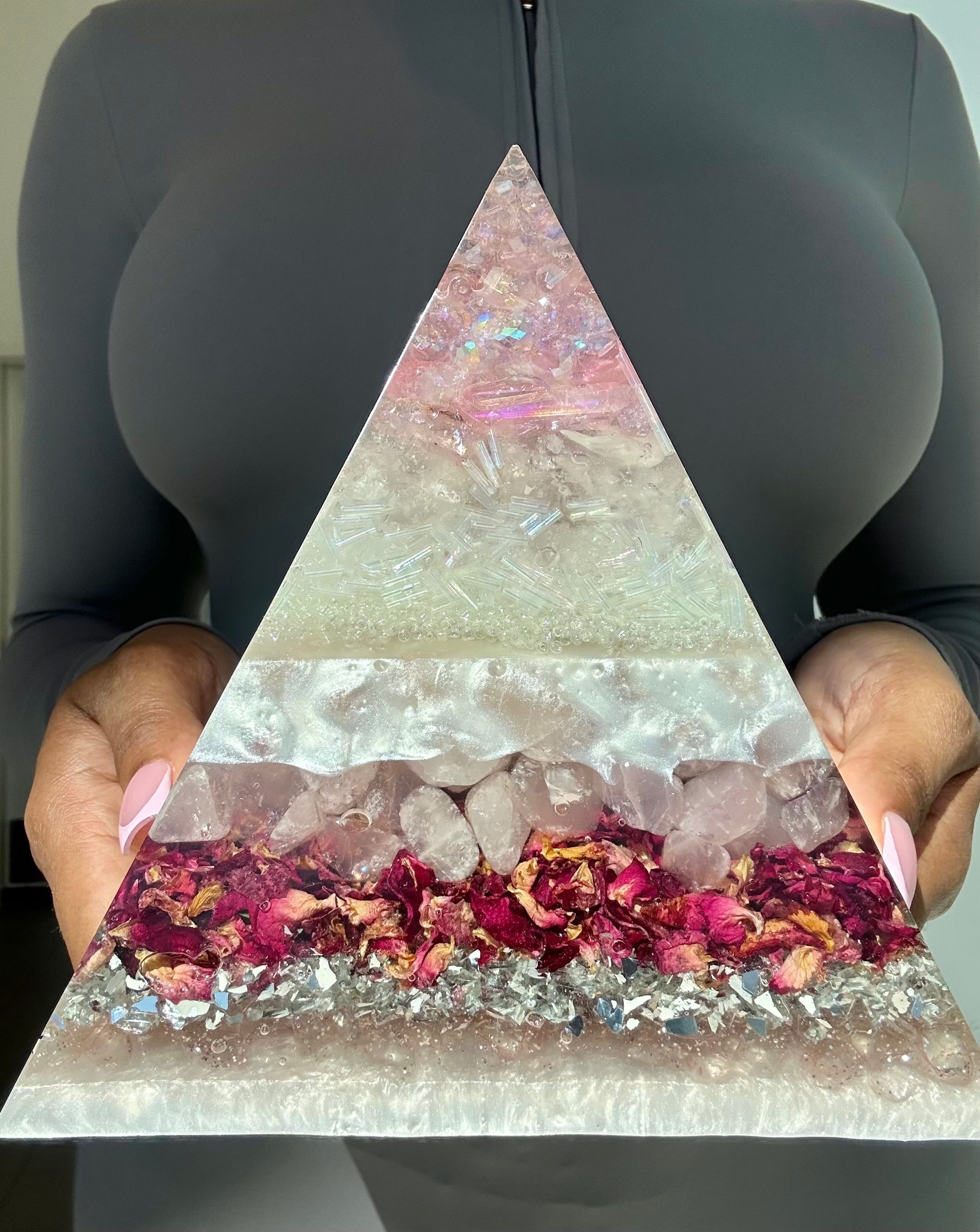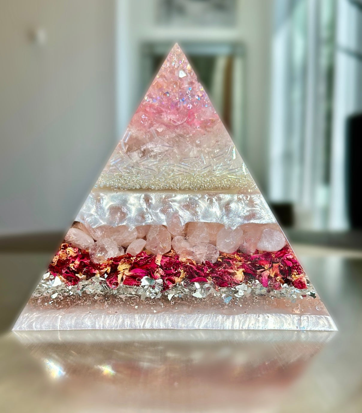 This pyramid is beautifully handmade by Myka with crystals, stones and metals.